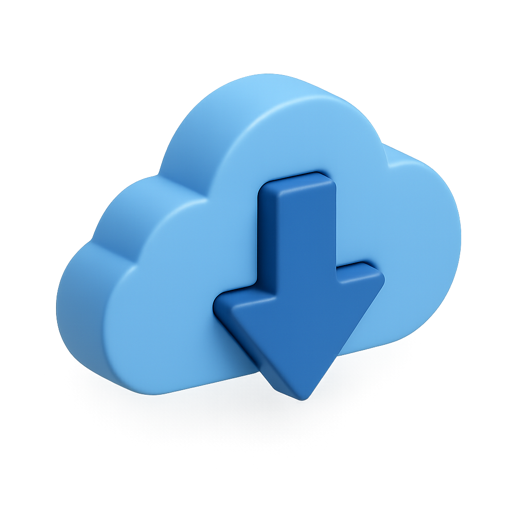 3D Cloud Download Icon with Arrow Design