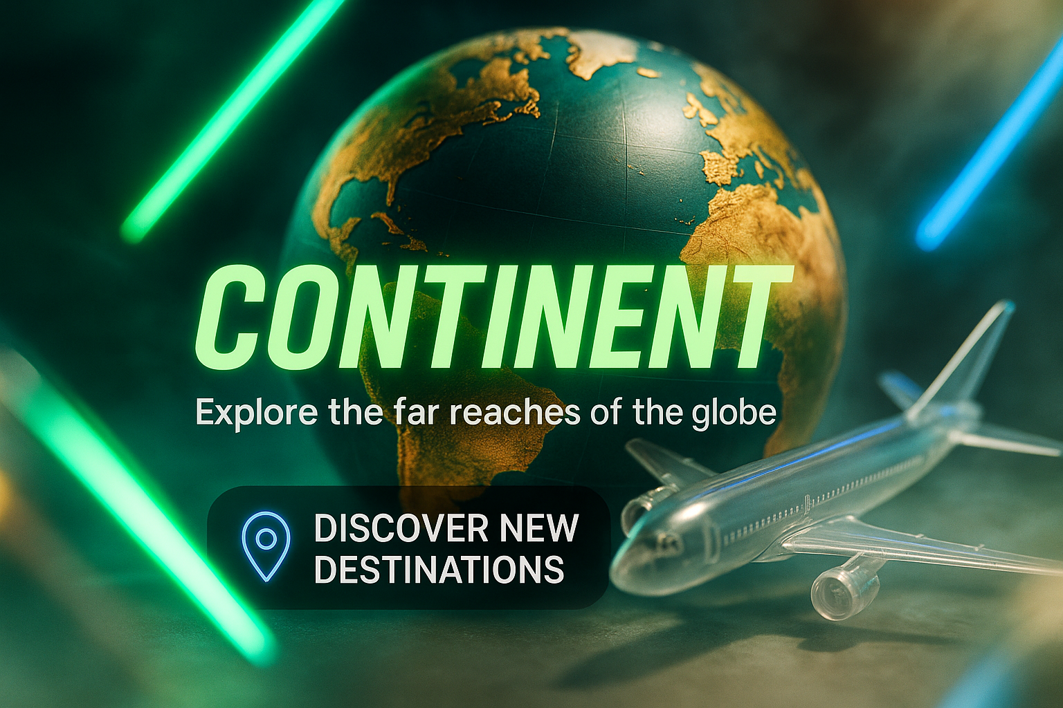 /Collection: /by davooda/Type: PNG/A vibrant and dynamic design showcasing a globe with neon accents and an airplane, inviting viewers to explore new destinations. The text is bold and eye-catching.