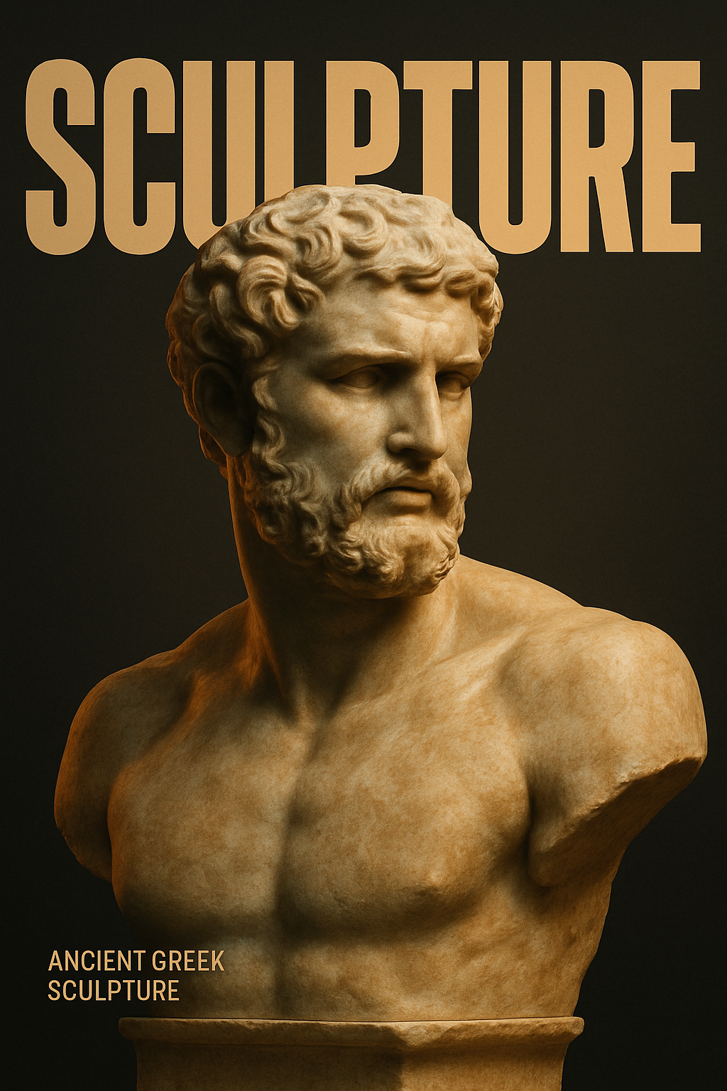 /Collection: /by davooda/Type: PNG/A striking 3D representation of an ancient Greek sculpture depicting a man, set against a dark gradient background. The bold typography emphasizes the artwork's modern and cinematic style.