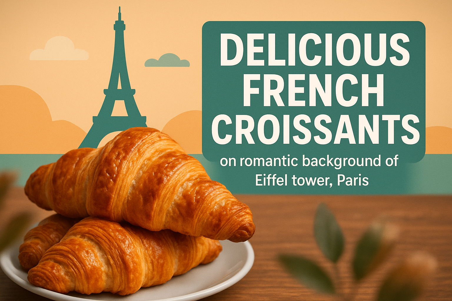 Delicious French Croissants with Eiffel Tower Background