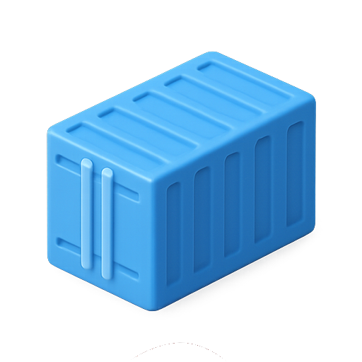 Stylized 3D render of a blue shipping container with a smooth finish and simple geometric design, suitable for use in logistics or transportation graphics.