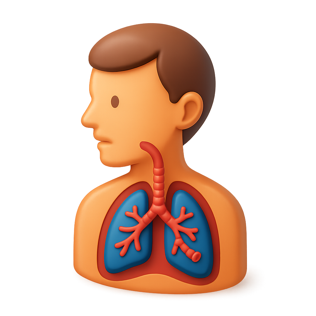 /Collection: /by davooda/Type: PNG/A 3D icon depicting human lungs and bronchial tubes, showcasing bronchitis in an isometric style. The figure is shown in profile with vibrant colors and a transparent background.