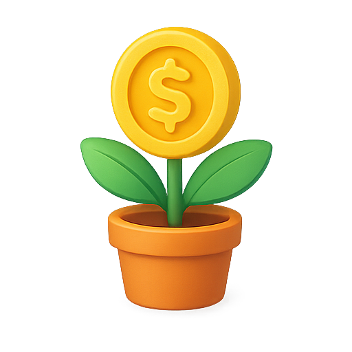 /Collection: /by davooda/Type: PNG/A vibrant 3D illustration depicting a plant with a dollar coin, symbolizing financial growth and investment. Suitable for finance-related content and marketing.