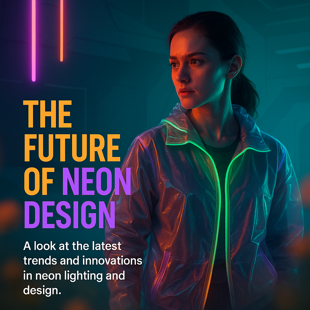 Stylish image showcasing a model in neon lighting, emphasizing contemporary trends in neon design. Ideal for design blogs and marketing materials.