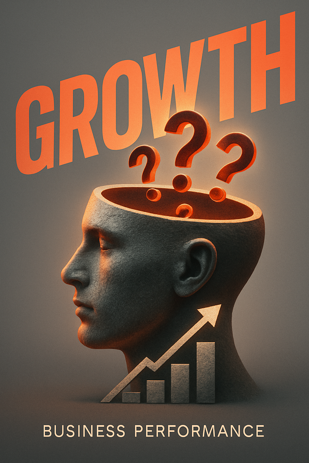 /Collection: /by davooda/Type: PNG/This illustration features a hyper-realistic human head silhouette with question marks, symbolizing mental health and business growth. The composition uses bold typography and a gradient background, conveying a modern, energetic mood.