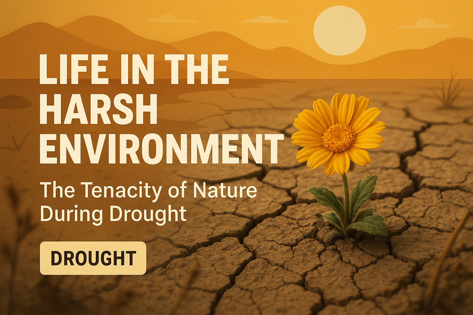 A visually striking graphic illustrating the theme of resilience in nature during drought conditions, featuring a vibrant flower against a cracked earth backdrop. Ideal for environmental awareness campaigns.