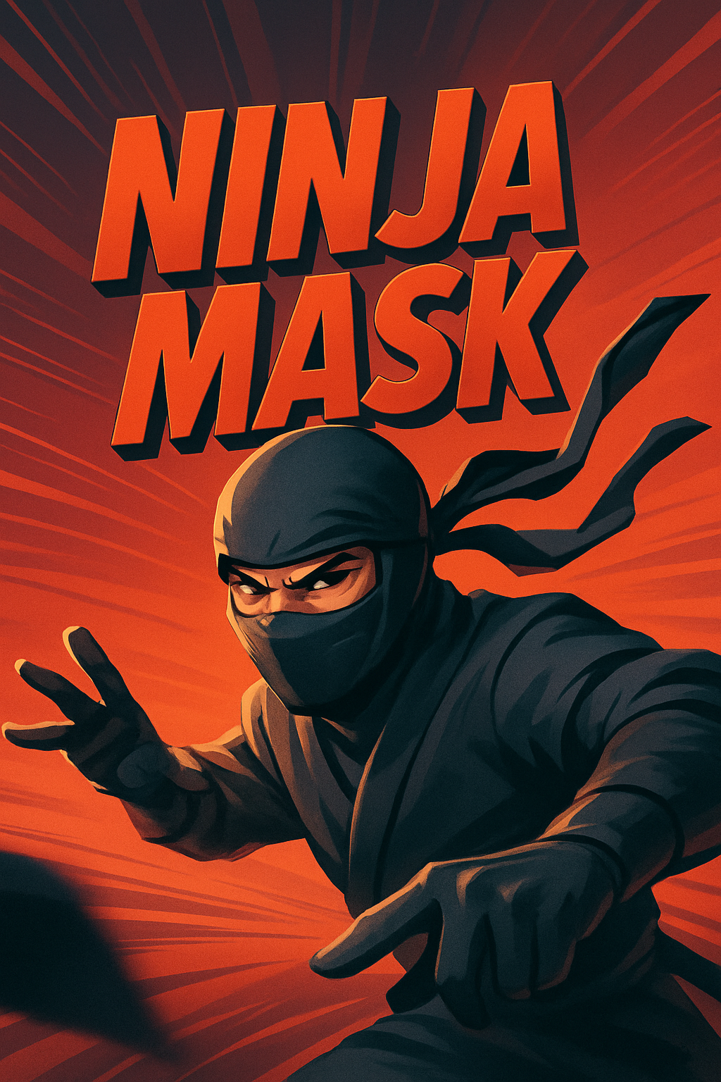 /Collection: /by davooda/Type: PNG/A dynamic illustration featuring a ninja in a striking pose, set against a vibrant red backdrop. The bold typography of 'Ninja Mask' engages viewers with its energetic vibe.