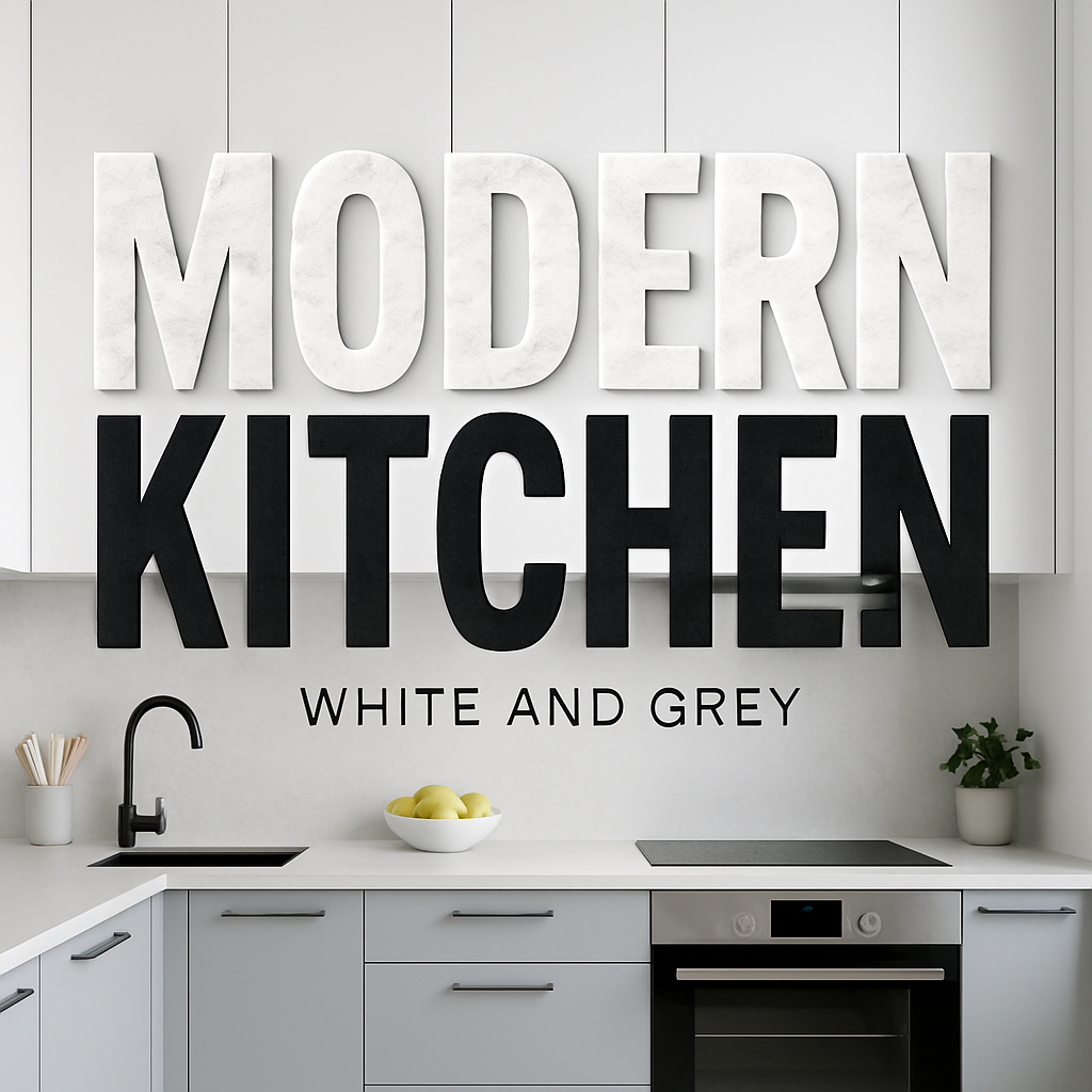 Contemporary kitchen design featuring a sleek white and grey color palette, ideal for home decor inspiration and interior design marketing.