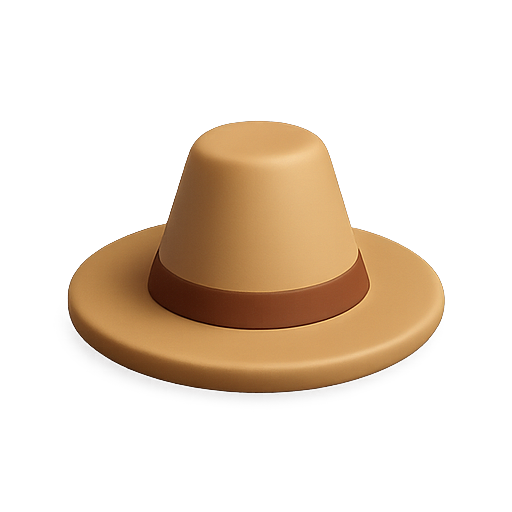 A minimalist representation of a brown wide-brim hat, featuring smooth surfaces and a modern aesthetic, suitable for fashion-focused branding or product showcases.