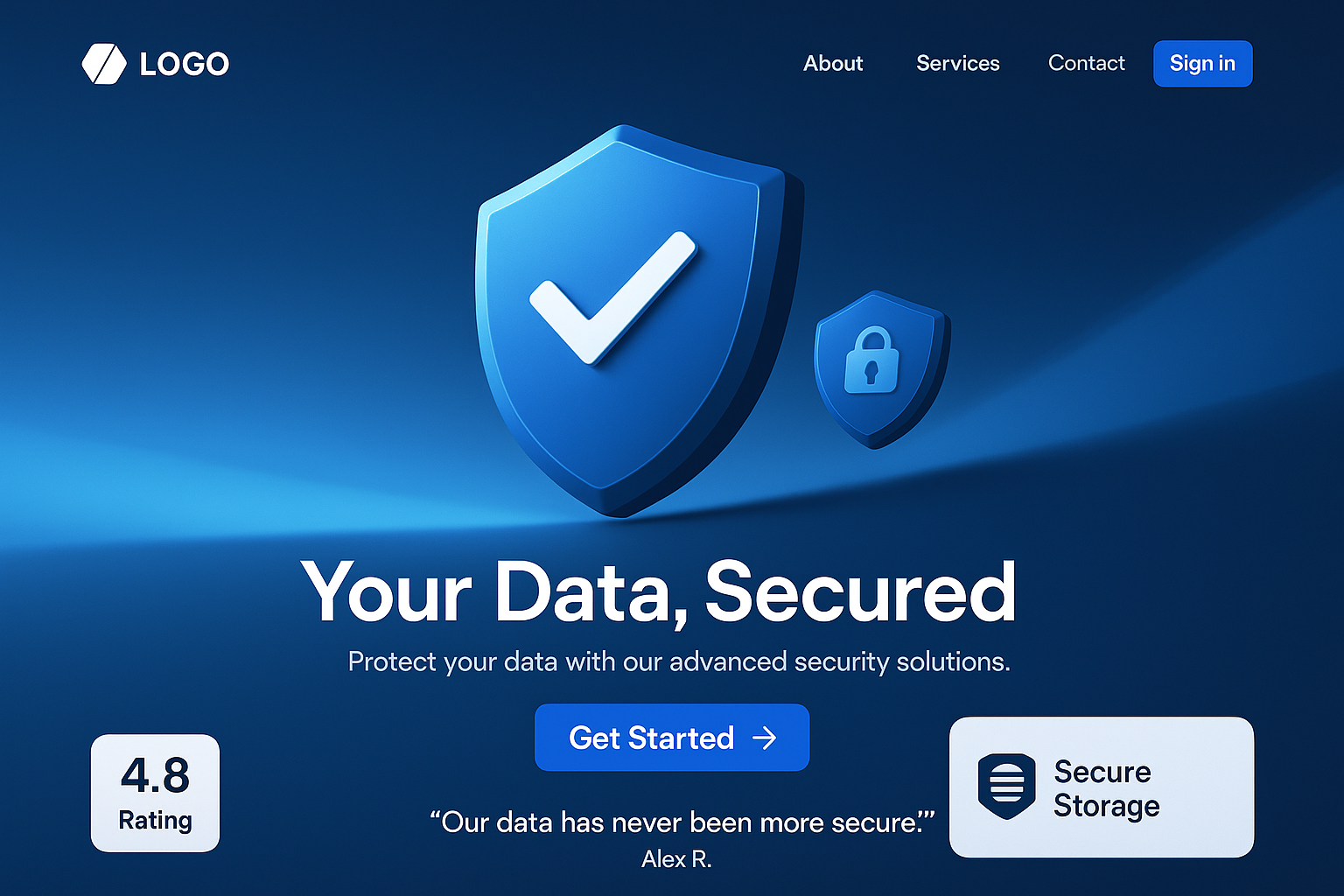 Modern Multimedia Landing Page Design for Secure Data Solutions