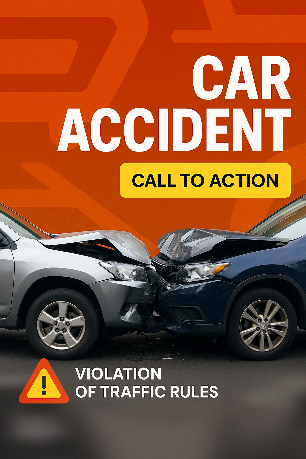 /Collection: /by davooda/Type: PNG/A striking graphic illustrating a car accident to raise awareness about traffic violations. The design features a bold color palette and clear typography, suitable for safety campaigns or legal services.