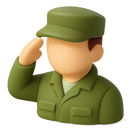 /Collection: /by davooda/Type: PNG/A stylized 3D emoji representation of a soldier saluting, wearing a military uniform and cap. Ideal for digital communication related to military themes or respect.