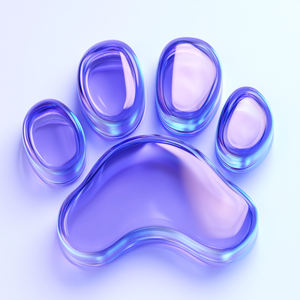 A visually appealing graphic depicting a stylized paw print made of translucent materials, ideal for pet-related branding or design projects.