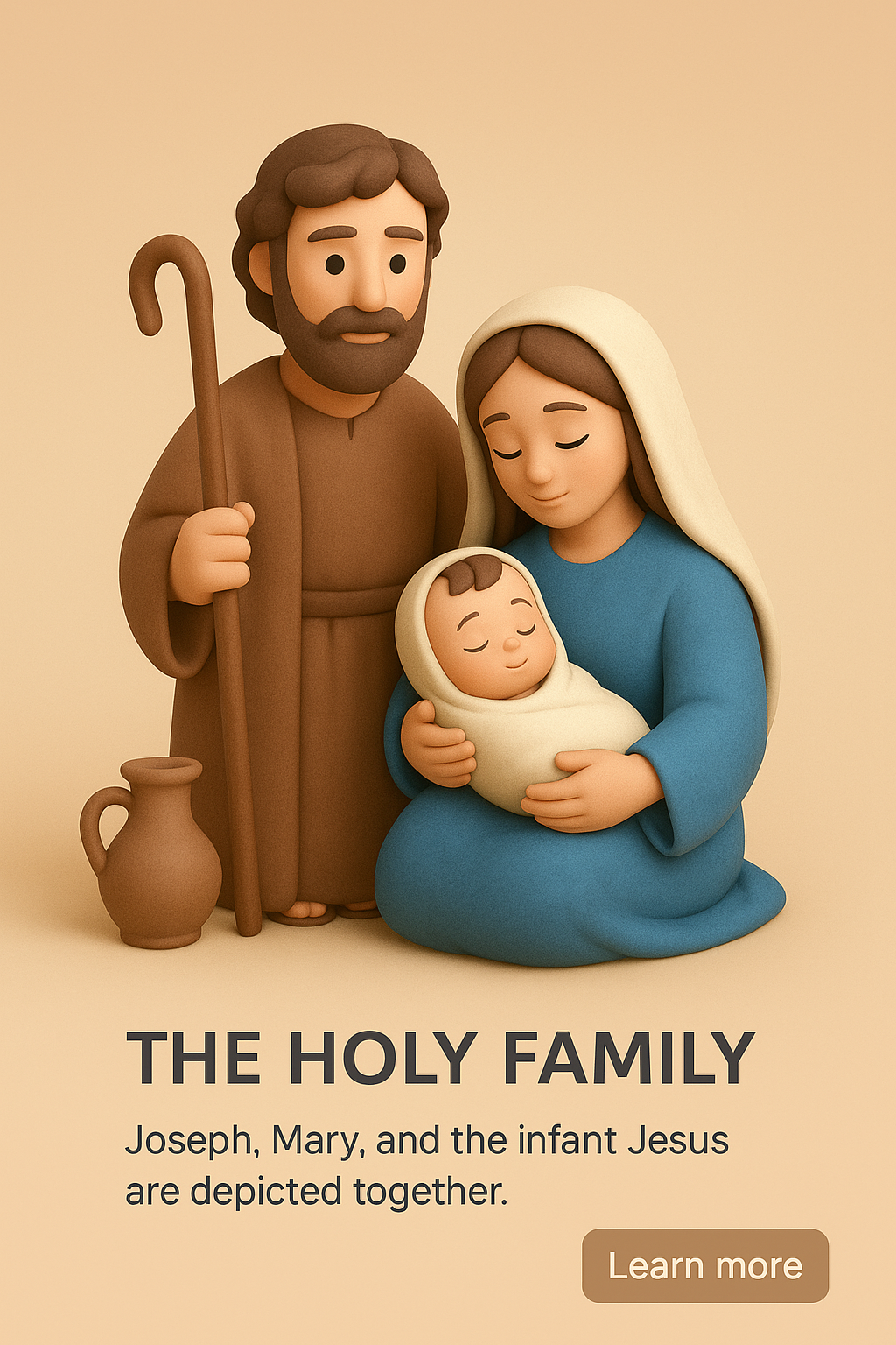 3D Illustration of The Holy Family - Jesus, Mary, and Joseph