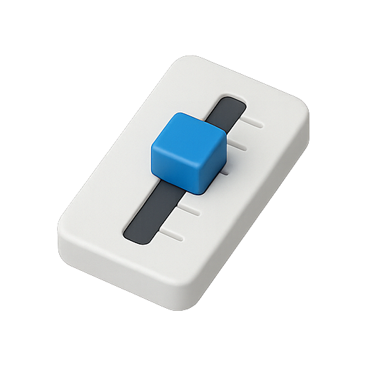 /Collection: /by davooda/Type: PNG/A sleek 3D representation of a slider control, featuring a white base with a blue slider knob. Ideal for digital design projects focused on user interface elements.