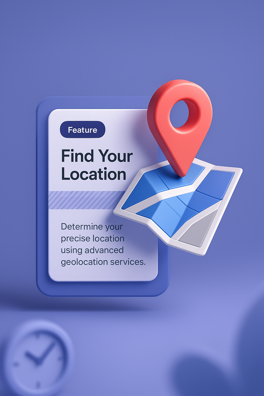 /Collection: /by davooda/Type: PNG/A vibrant 3D illustration showcasing a location pin above a map, highlighting geolocation features for web design. The design integrates smoothly with a gradient background.