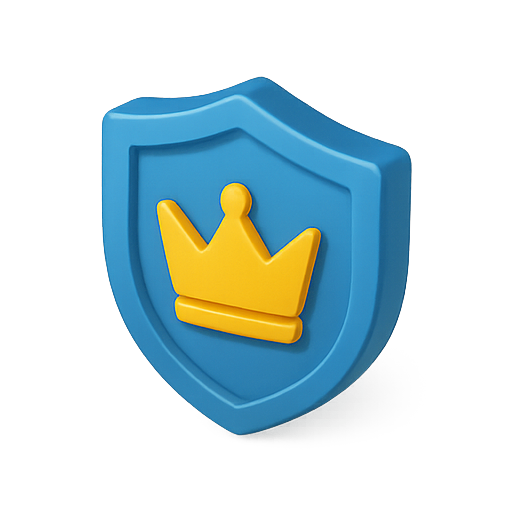 Stylized 3D shield icon featuring a crown symbol, ideal for representing security, royalty, or achievement. The design is modern and vibrant, suitable for digital applications.