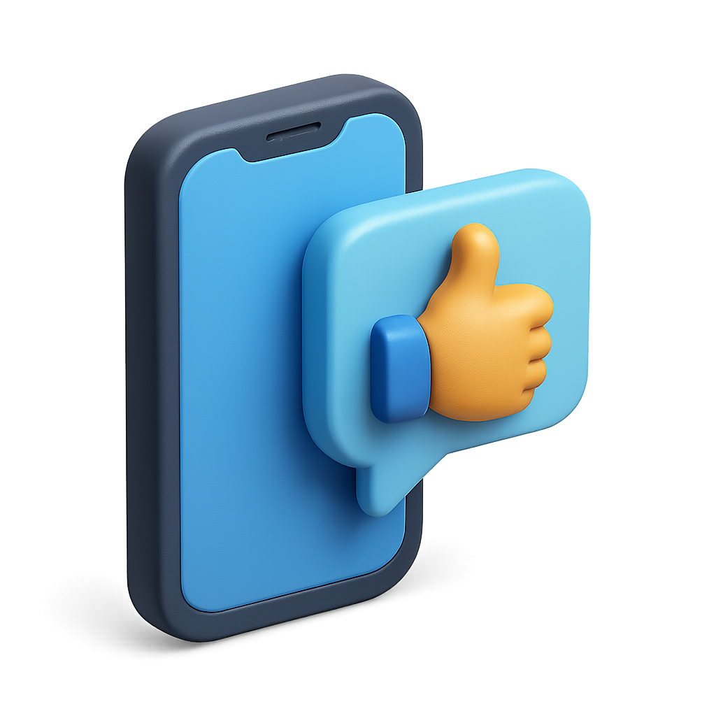 3D Thumbs-Up Icon with Phone and Message Bubble