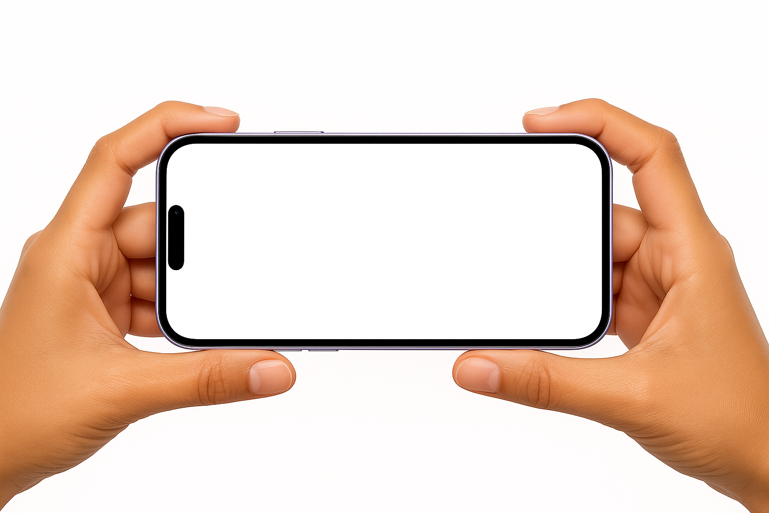 Horizontal Purple Phone Held by Hands with Blank Screen