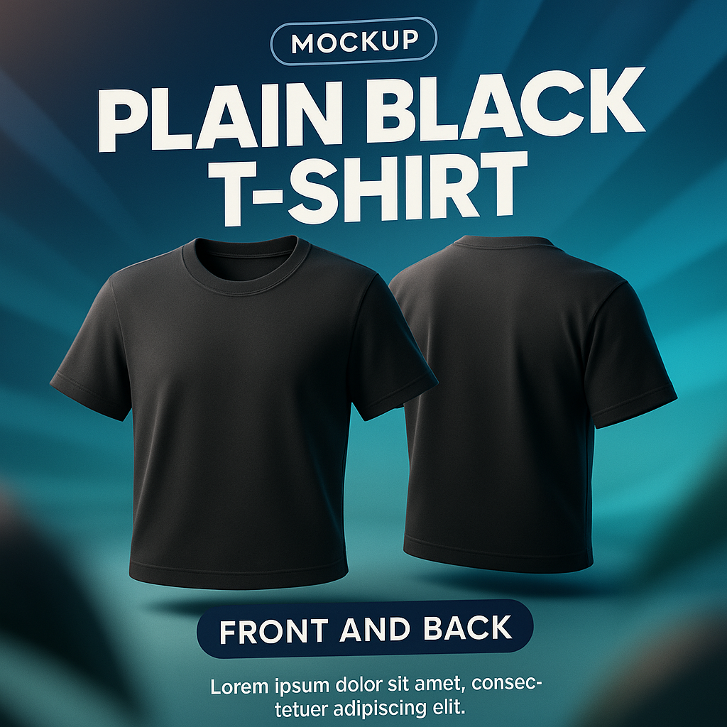 Realistic Mockup of a Plain Black T-Shirt Front and Back