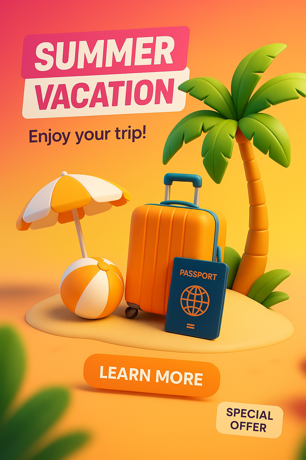 3D Vacation and Travel Promotion Graphic