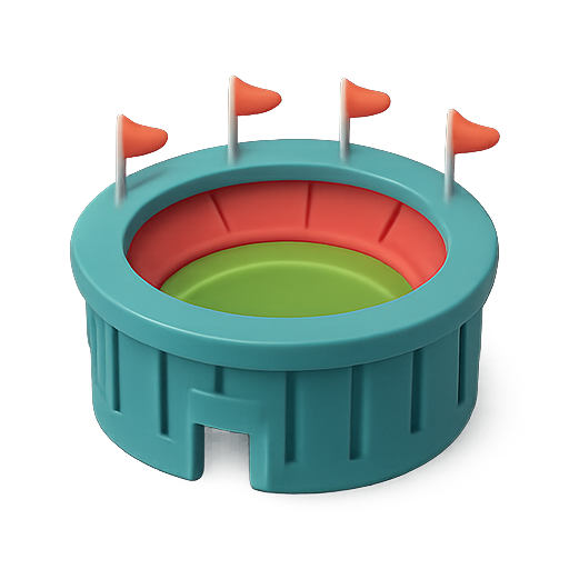 Stylized Isometric 3D Arena Icon with Volumetric Design