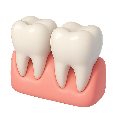 A detailed 3D illustration of two teeth resting on gum tissue, ideal for dental health education or promotional materials in dentistry. The model showcases a clean and modern design.