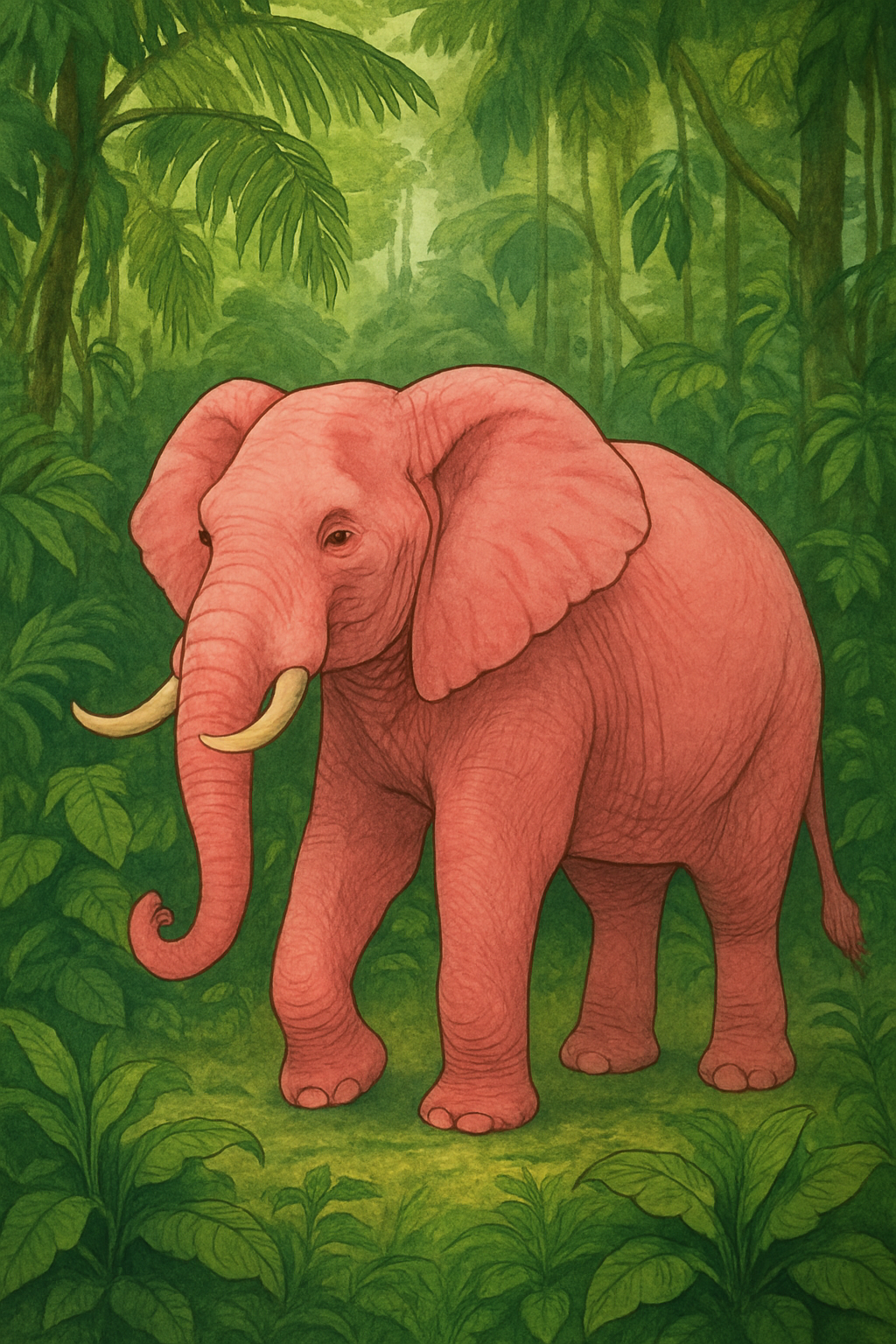 Whimsical Illustration of a Pink Elephant in a Jungle