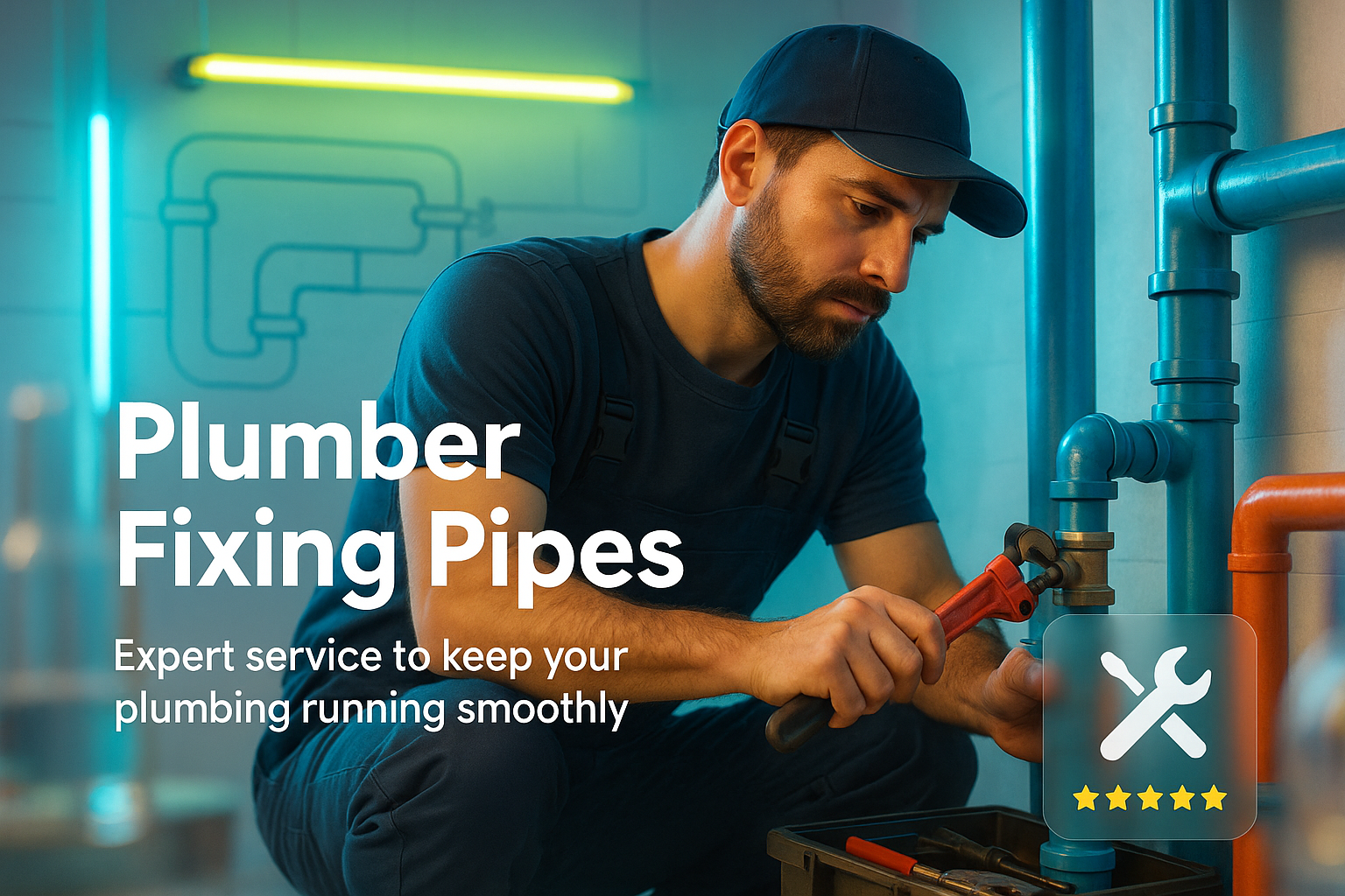 Professional Plumber Fixing Pipes with Tools in a Modern Setting