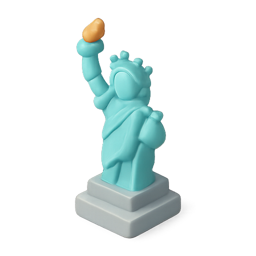 A whimsical figurine representing the Statue of Liberty, designed in bright colors with a modern twist. Ideal for playful decor or collectible purposes.