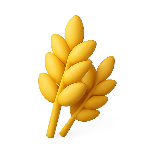 A 3D illustration of stylized wheat ears in bright yellow, showcasing a modern and playful design. Ideal for agricultural branding or food-related projects.