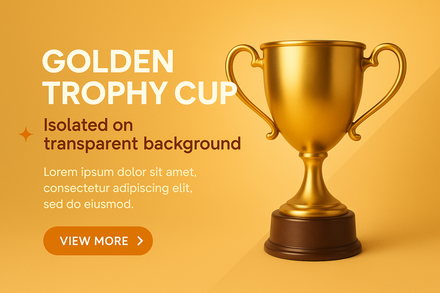 /Collection: /by davooda/Type: PNG/A beautifully designed golden trophy cup set against a warm, gradient background. The trophy features intricate details, with bold typography and a call-to-action button enhancing its appeal.