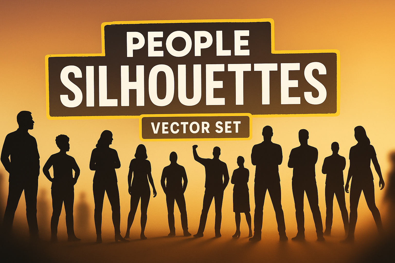 /Collection: /by davooda/Type: PNG/A visually striking vector graphic showcasing various silhouettes of people against a gradient sunset background, ideal for design projects such as posters, presentations, and social media content.
