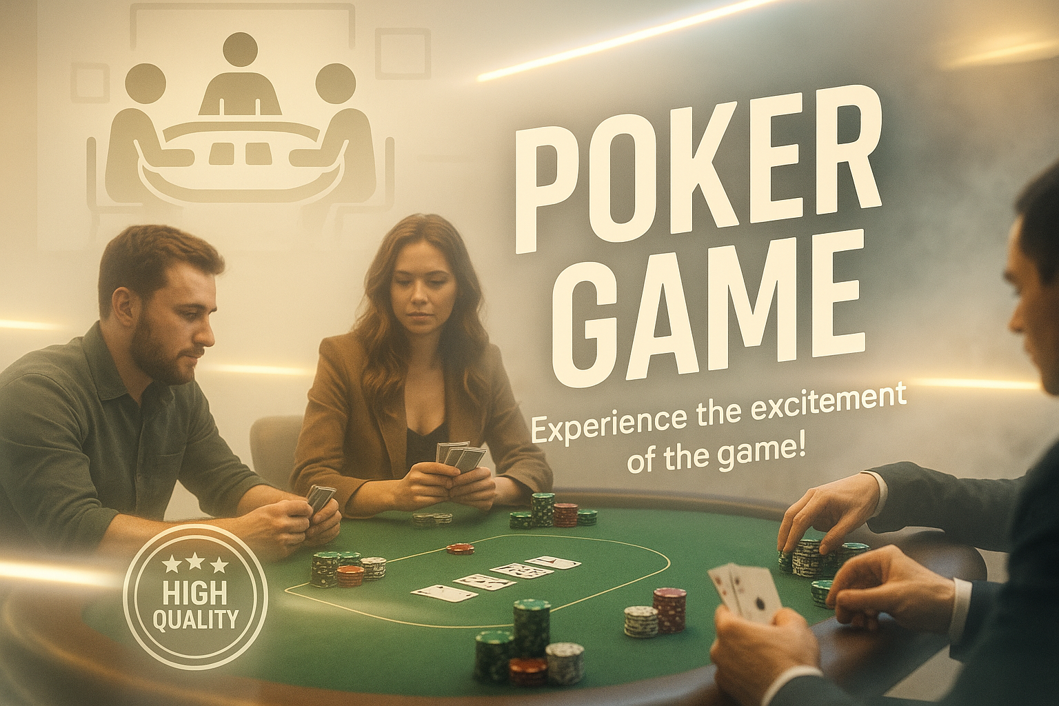 /Collection: /by davooda/Type: PNG/Dynamic promotional image featuring players engaged in a poker game, emphasizing excitement and high-quality experience. Ideal for gaming-related marketing.