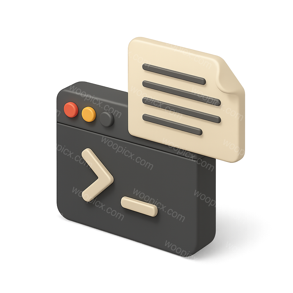 /Premium/Collection: /by davooda/Type: PNG/A stylized 3D icon representing a bash script, featuring a terminal window with a document overlay. The design showcases a three-quarter view with a soft color palette.
