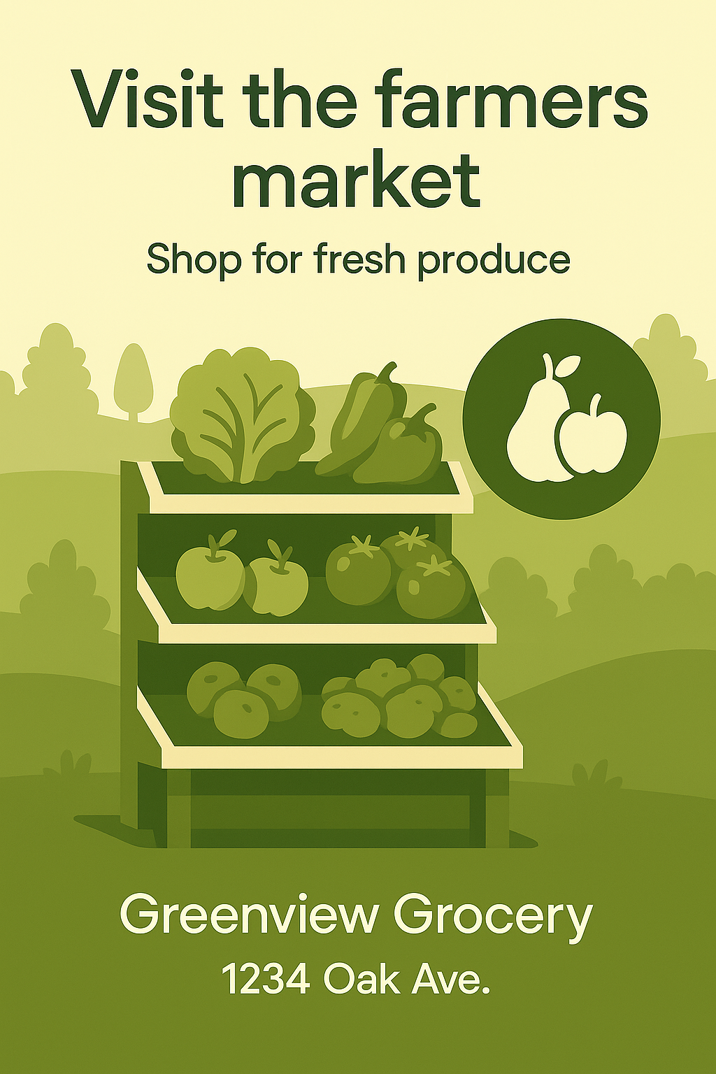 Farmers Market Promotion Graphic with Fresh Produce Illustration