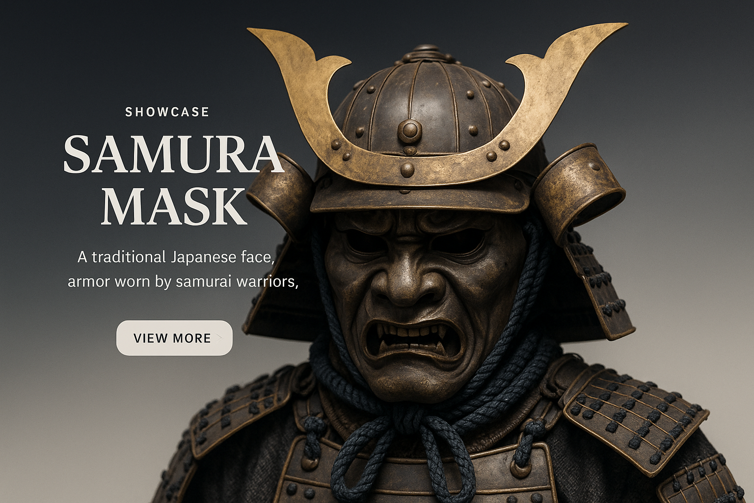 A striking samurai mask featuring intricate details and traditional armor elements, set against a gradient background that enhances its formidable appearance.