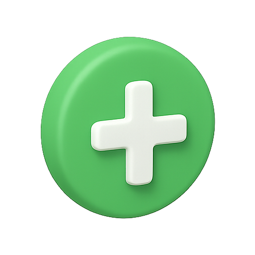 A clean, modern green circular button featuring a white plus symbol, suitable for user interface design or application icons.