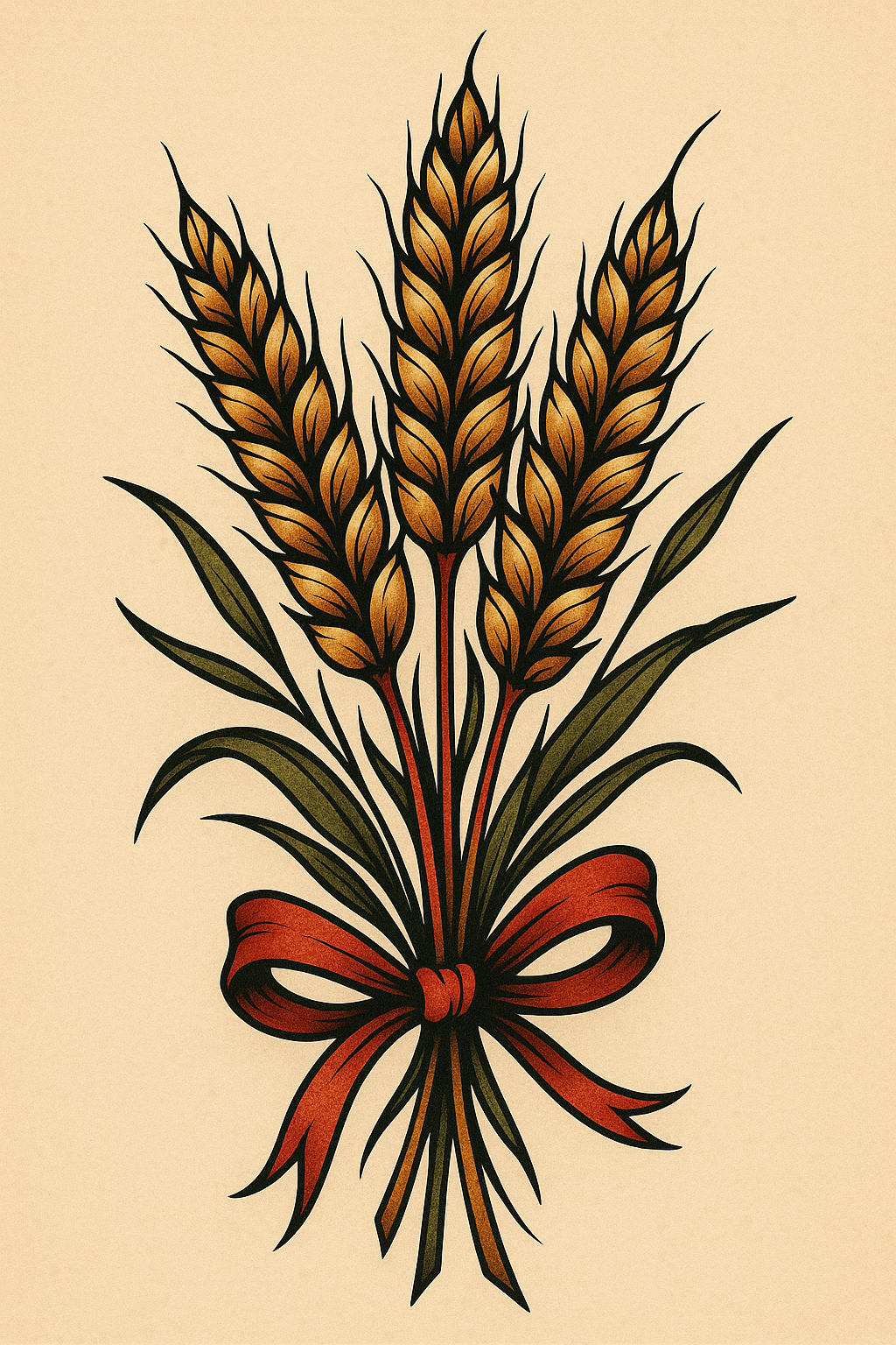 Artistic Illustration of Wheat Sheaves with Ribbon