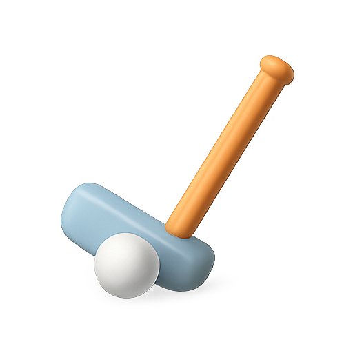 A vibrant illustration of a croquet mallet and ball, featuring a modern design style. Ideal for sports-related content, games, or recreational activities.