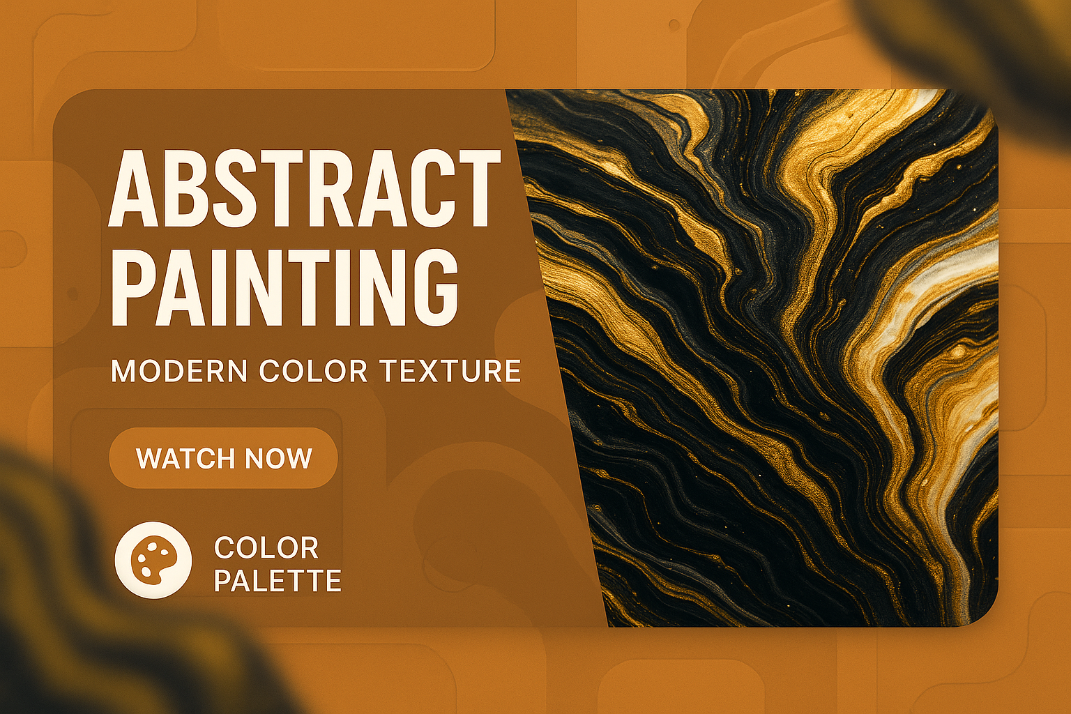 Vibrant abstract painting graphic featuring modern color textures in gold and black. Ideal for art promotion, social media, or design showcases.