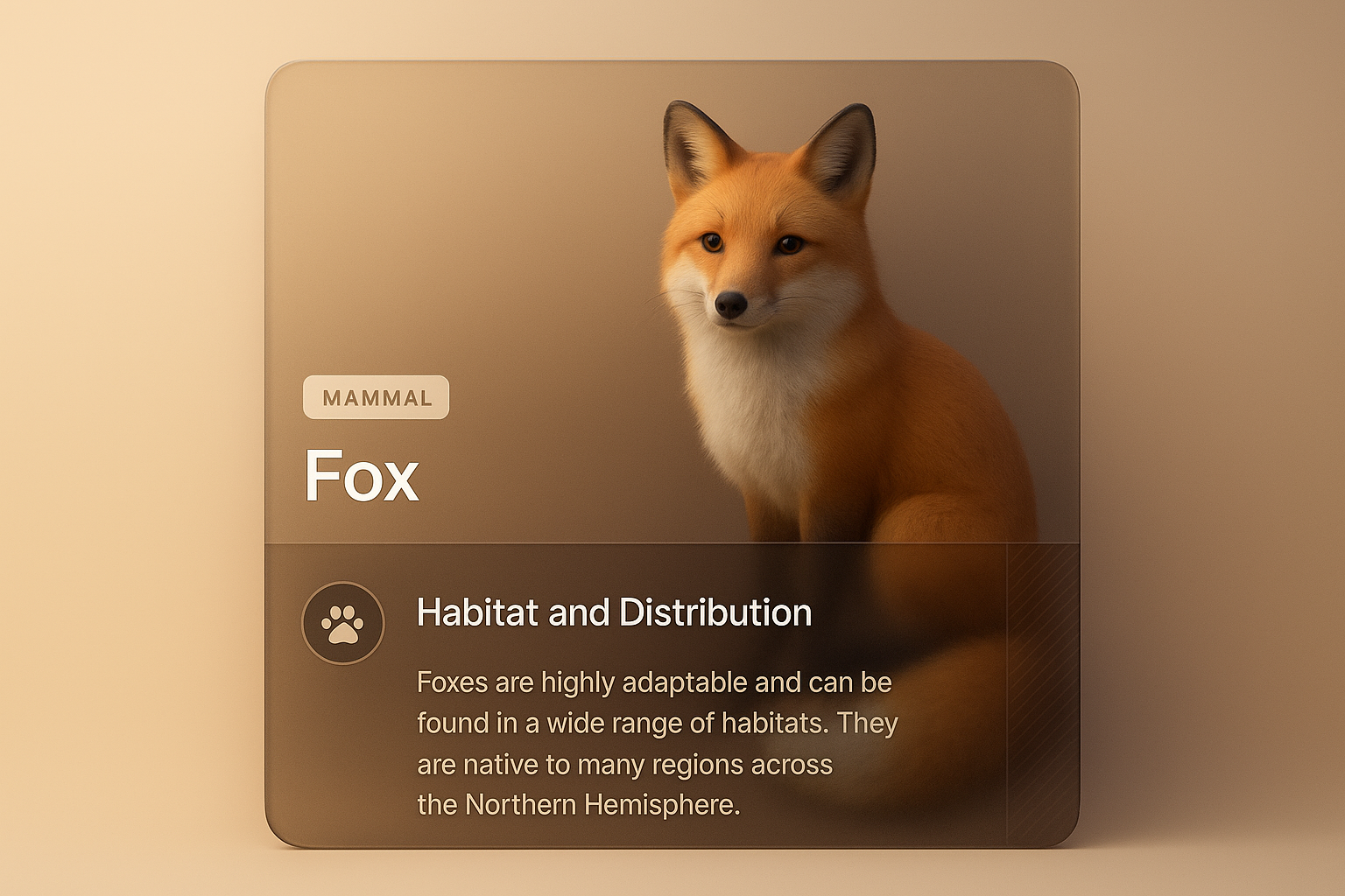A beautifully rendered 3D illustration of a fox with a translucent overlay, featuring habitat information and a clean design that emphasizes readability.