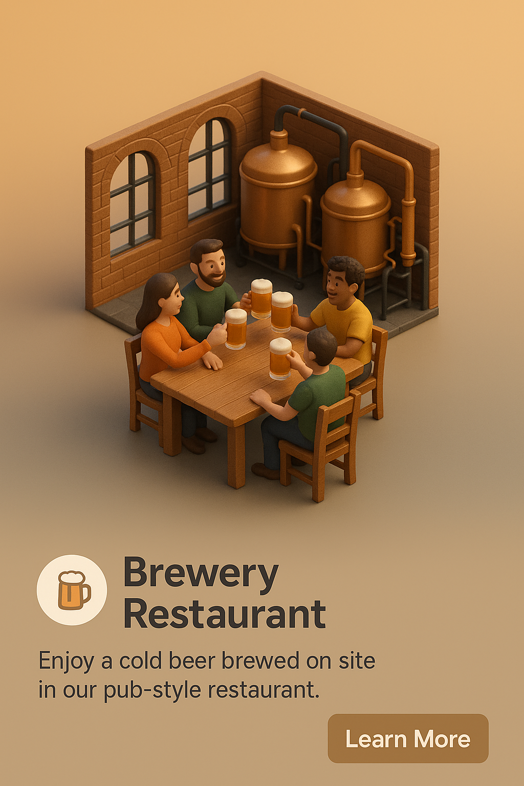 /Collection: /by davooda/Type: PNG/A cozy 3D scene depicting a group of people enjoying beer at a brewery restaurant. The setting features brewing equipment in a warm atmosphere, creating a social vibe.