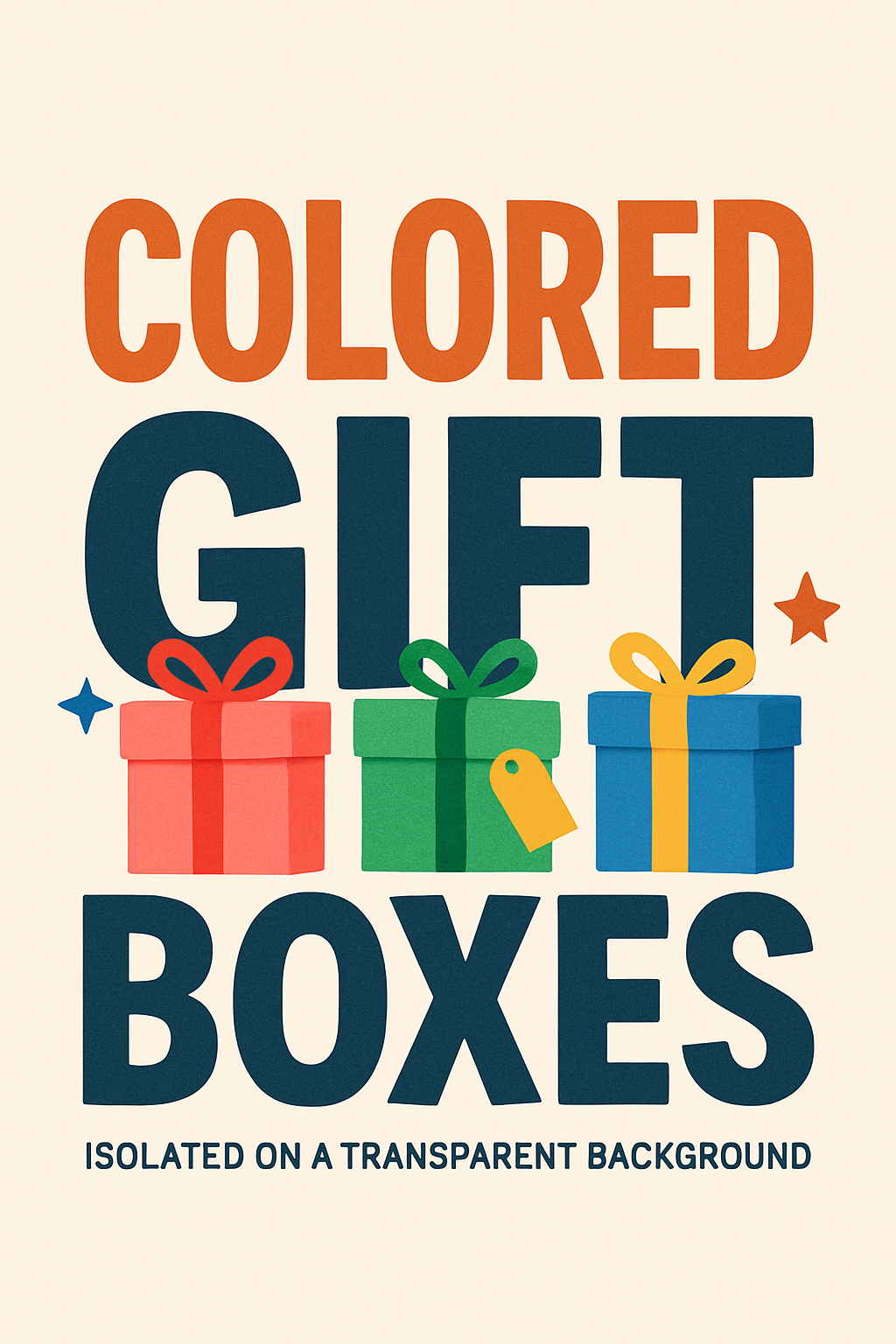 /Collection: /by davooda/Type: PNG/Vibrant illustration of gift boxes in various colors, perfect for festive themes or marketing materials. The design features a clean, modern aesthetic ideal for social media or promotional use.