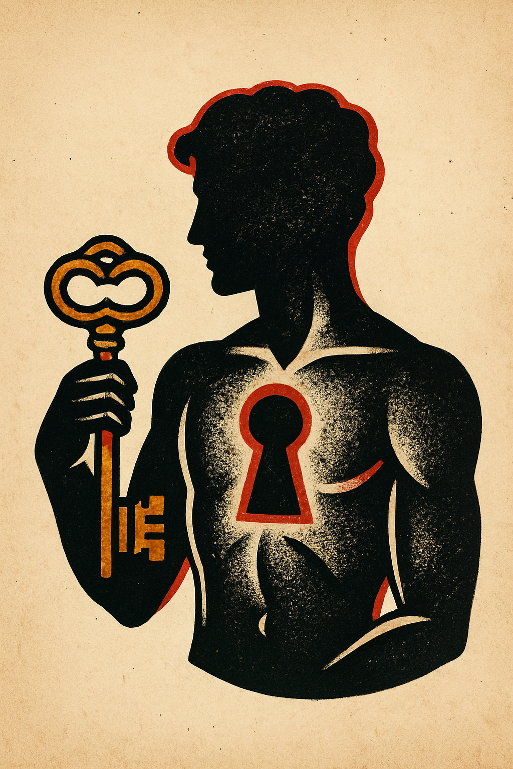 Vintage Key and Lock Tattoo Design on Human Silhouette