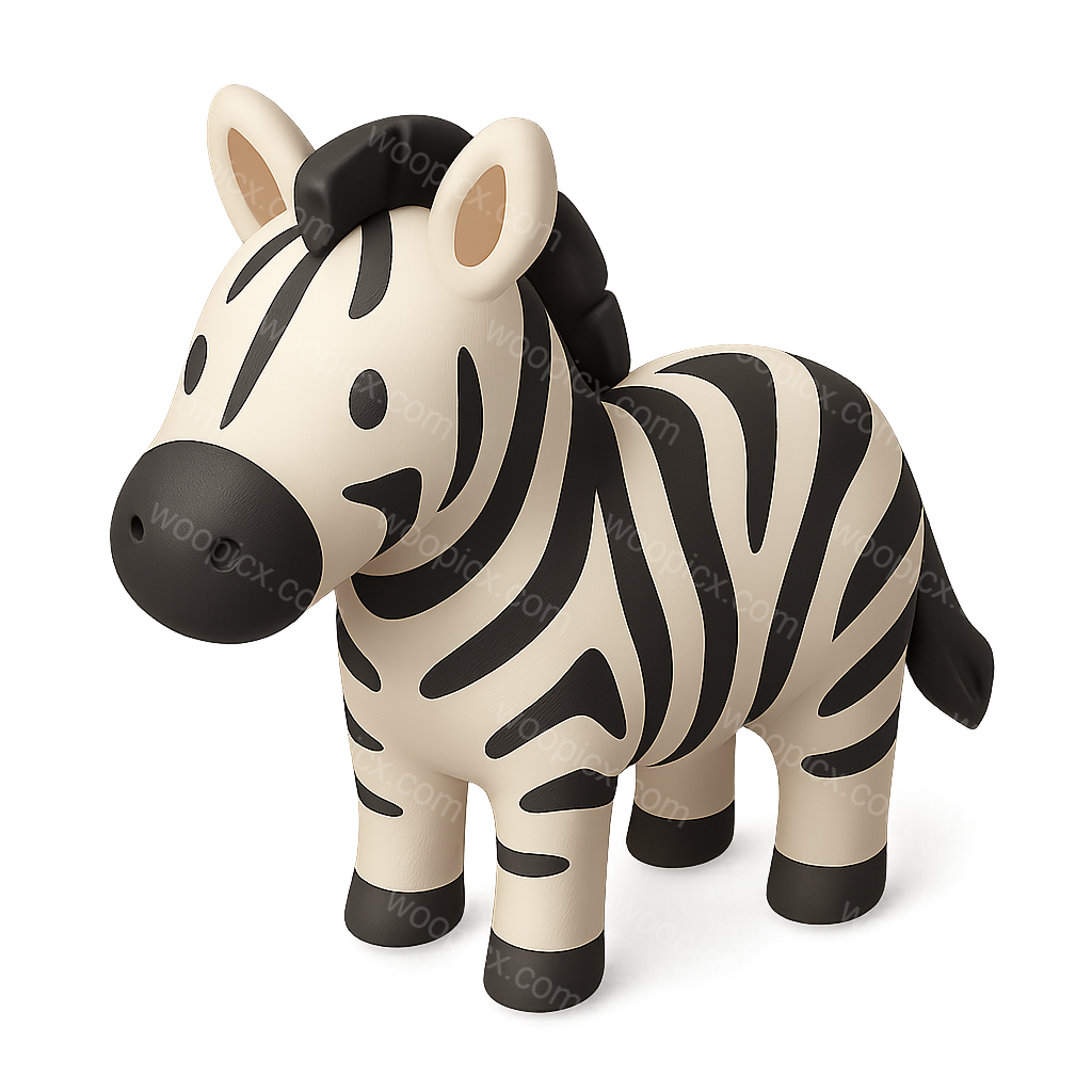 /Premium/Collection: /by davooda/Type: PNG/A stylized 3D zebra icon featuring distinct black and white stripes. The icon is presented in a three-quarter view on a transparent background, showcasing a playful and friendly design.