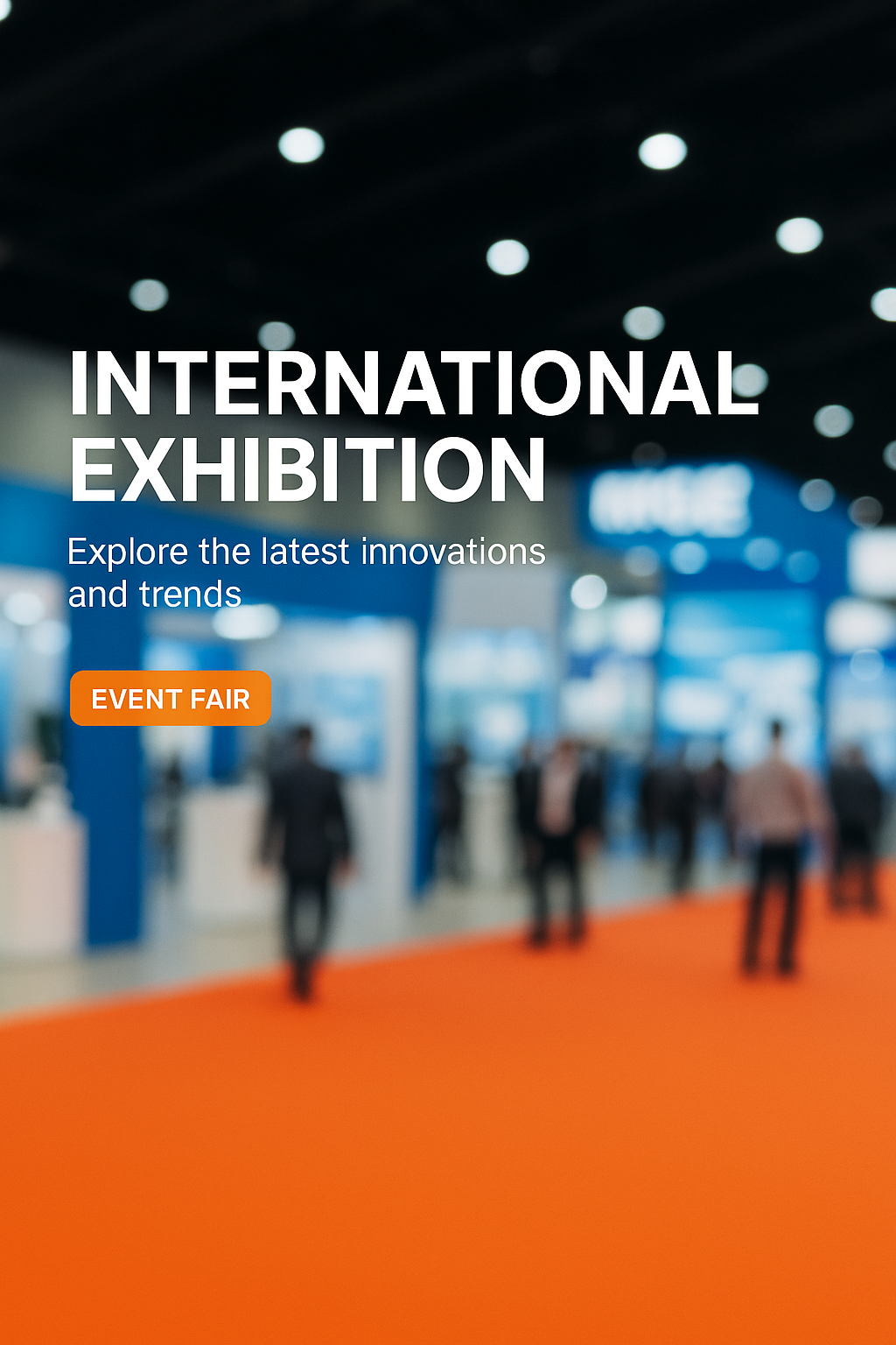/Collection: /by davooda/Type: PNG/Dynamic promotional graphic for an international exhibition showcasing innovations and trends. The blurred background adds depth, emphasizing the event's vibrant atmosphere, ideal for marketing materials.