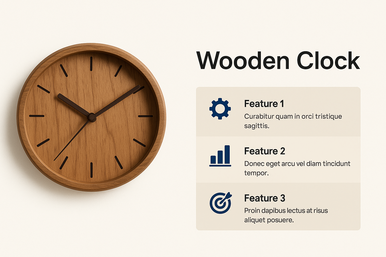 Wooden Clock Product Highlight with Feature Overview