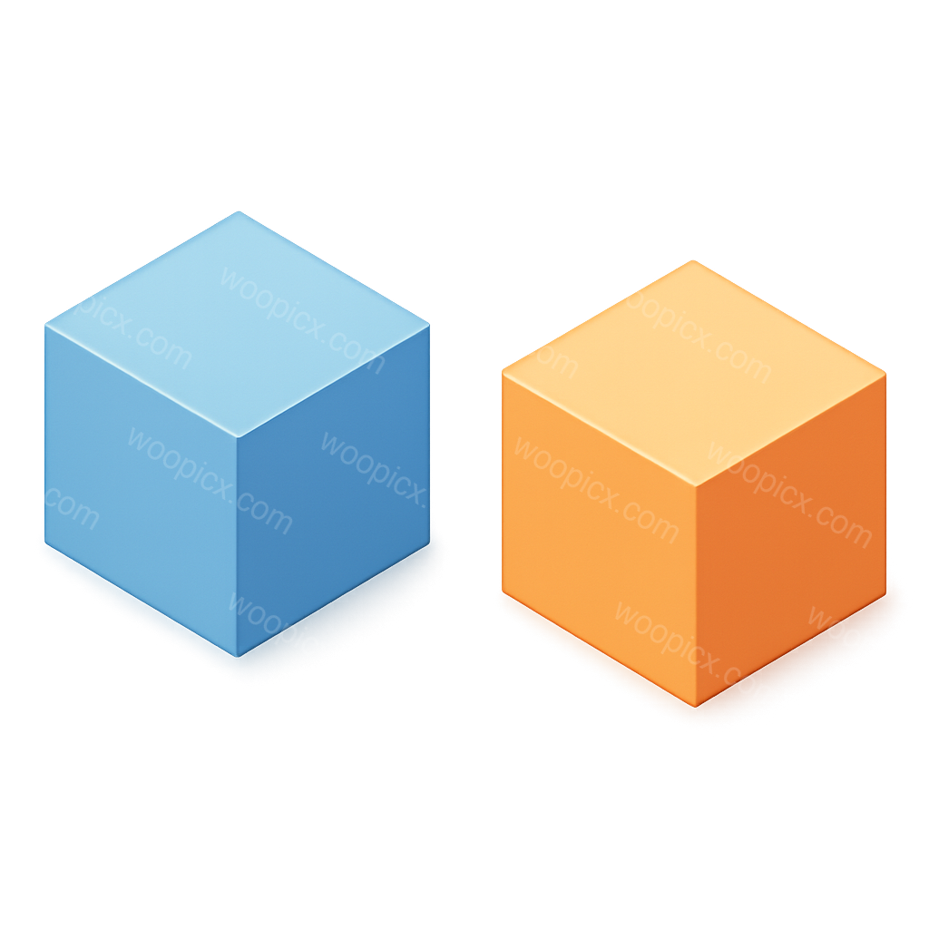 /Premium/Collection: /by davooda/Type: PNG/Two geometric cubes, one blue and one orange, presented in a three-quarter isometric view. The design features a smooth, glossy finish with a subtle glow effect.