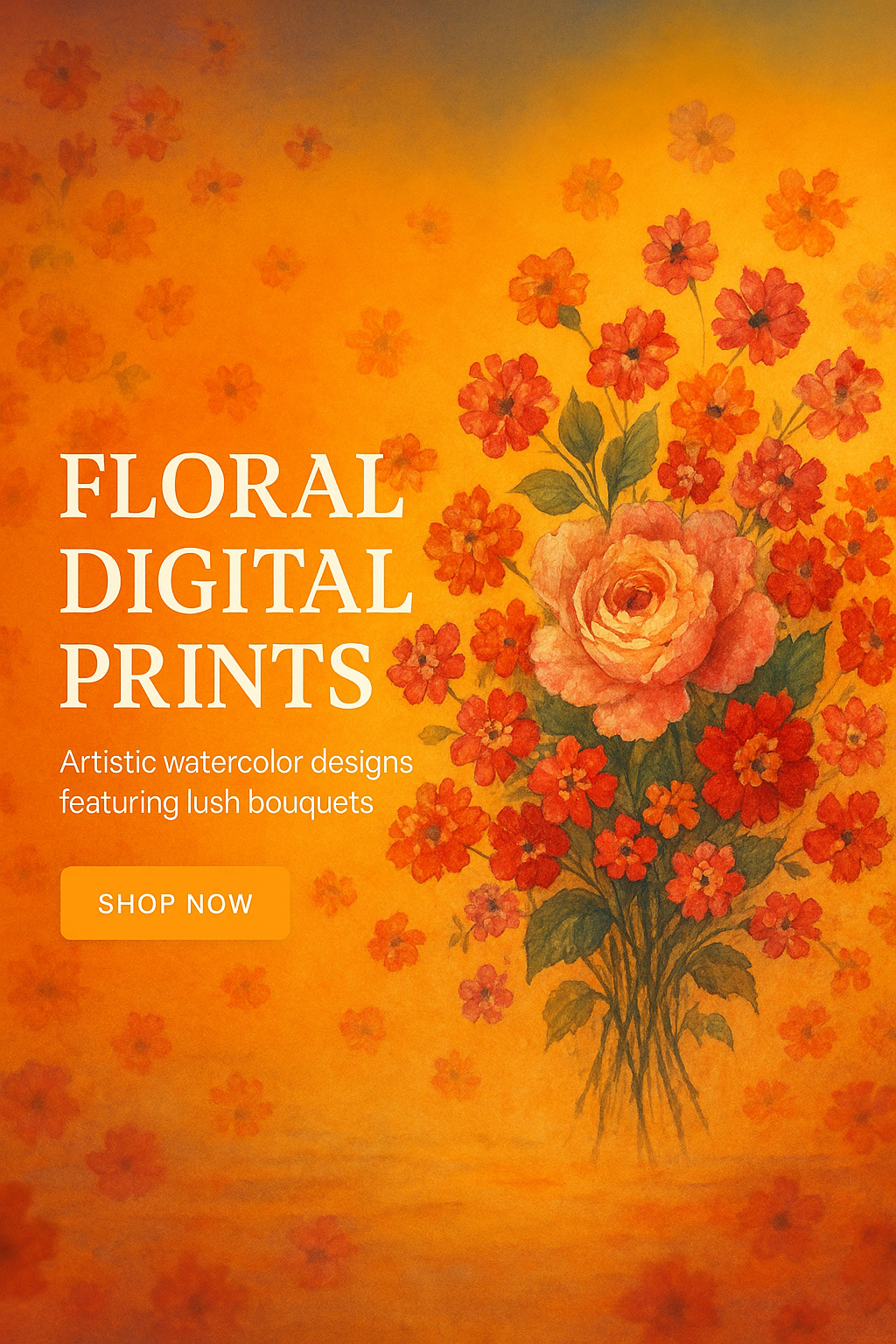 Vibrant Floral Digital Prints Featuring Watercolor Designs
